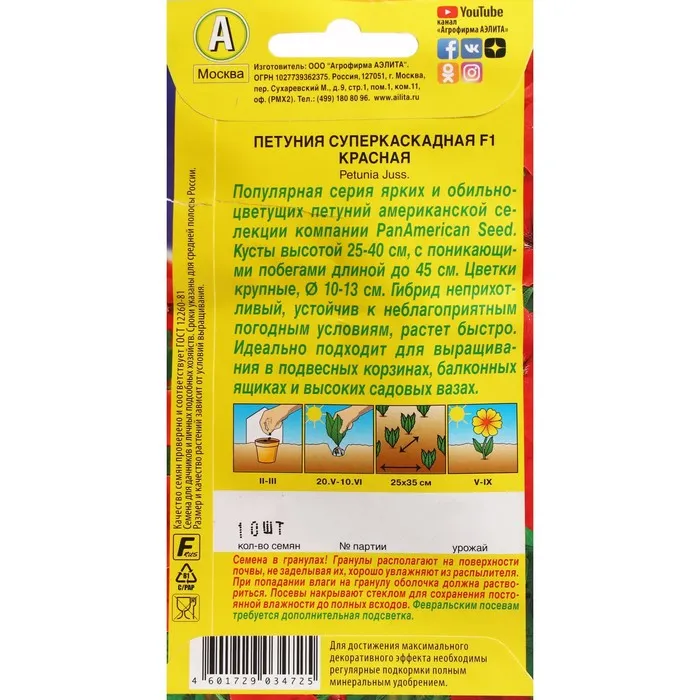 Семена Цветов Петуния "суперкаскадная", F1, красная, драже в пробирке,10 шт — Характеристики
