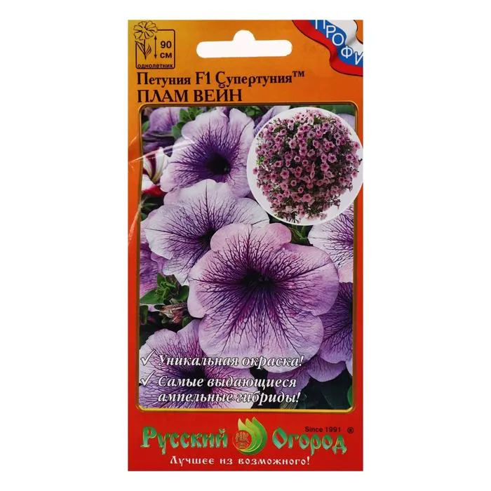 Супертуния F1 Плам Вейн – цветочное гибридное растение с удивительной цветовой гаммой и продолжительностью цветения. Идеально для цветника на открытом грунте, а также для выращивания внутри помещения. Может использоваться и как декоративный поребрик, бордюр.