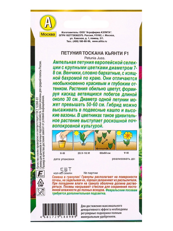 Семена цветов Петуния Тоскана кьянти F1 крупноцветковая (драже) , Ц/П,5 шт. — Характеристики