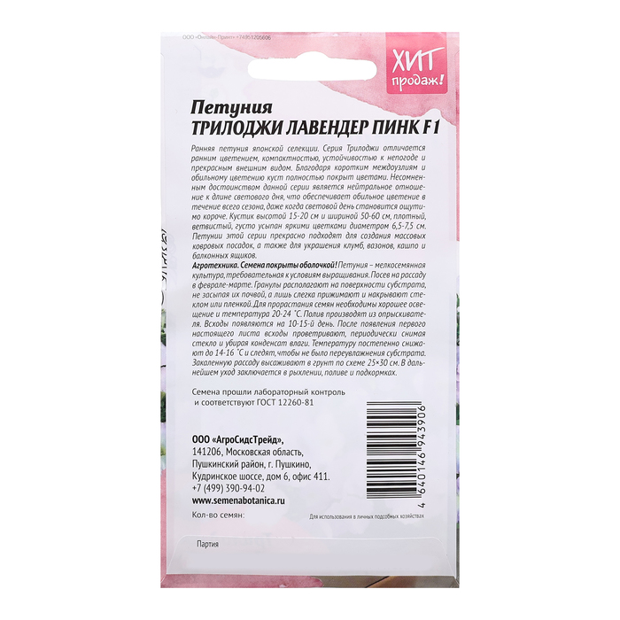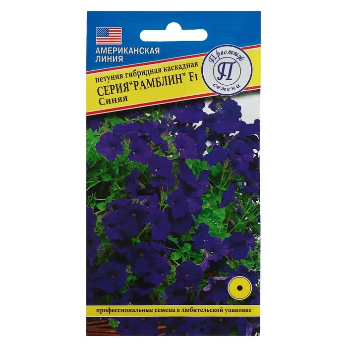 Ранняя петуния японской селекции. Серия Трилоджи отличается ранним цветением, компактностью, устойчивостью к непогоде и прекрасным внешним видом. Благодаря коротким междоузлиям и обильному цветению куст полностью покрыт цветами._x005F_x000B_Несомненным достоинством данной серии является нейтральное отношение к длине светового дня, что обеспечивает обильное цветение в течение всего сезона, даже когда световой день становится ощутимо короче. Кустик высотой 15-20 см и шириной 50-60 см, плотный, ветвистый, густо усыпан яркими цветками, диаметром 6,5 – 7,5 см. Эффектная смесь состоит из двух расцветок, прекрасно сочетающихся друг с другом, насыщенно голубо-синей и снежно белой. Петунии этой серии прекрасно подходят для создания массовых ковровых посадок, а также для украшения клумб, вазонов, кашпо и балконных ящиков. Агротехника: Семена покрыты оболочкой! Петуния – мелкосемянная культура, требовательная к условиям выращивания. Посев на рассаду в феврале-марте. Гранулы располагают на поверхности субстрата, не засыпая их почвой, а лишь слегка прижимают и накрывают стеклом или пленкой. Для прорастания семян необходимо хорошее освещение и температура 20-24˚С. Полив производят из опрыскивателя. Всходы появляются на 10-15 день. После появления первого настоящего листа всходы проветривают, периодически снимая стекло и убирая конденсат влаги. Температуру постепенно снижают до 14-16˚С и следят, чтобы не было переувлажнения субстрата. Закаленную рассаду высаживают в грунт по схеме 15×20 см. В дальнейшем уход заключается в рыхлении, поливе и подкормах. Штрих-код -