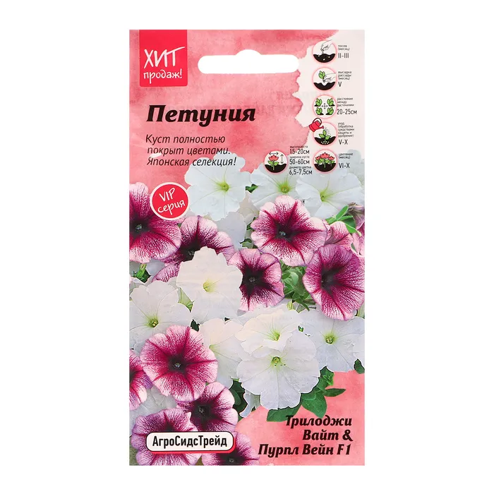 Семена цветов Петуния "Трилоджи Вайт энд Пурпл Вэйн", 5 шт — Характеристики