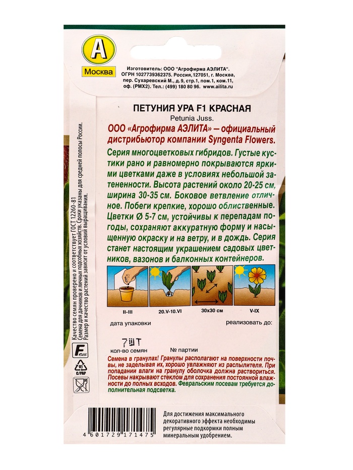 Семена цветов Петуния «Ура», F1, красная, драже в пробирке, Syngenta, 7 шт., «Агрофирма АЭЛИТА» — Характеристики