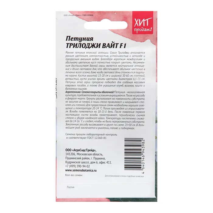 Семена цветов Петуния "Вайт", 5 шт — Характеристики