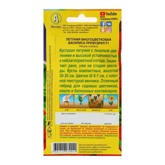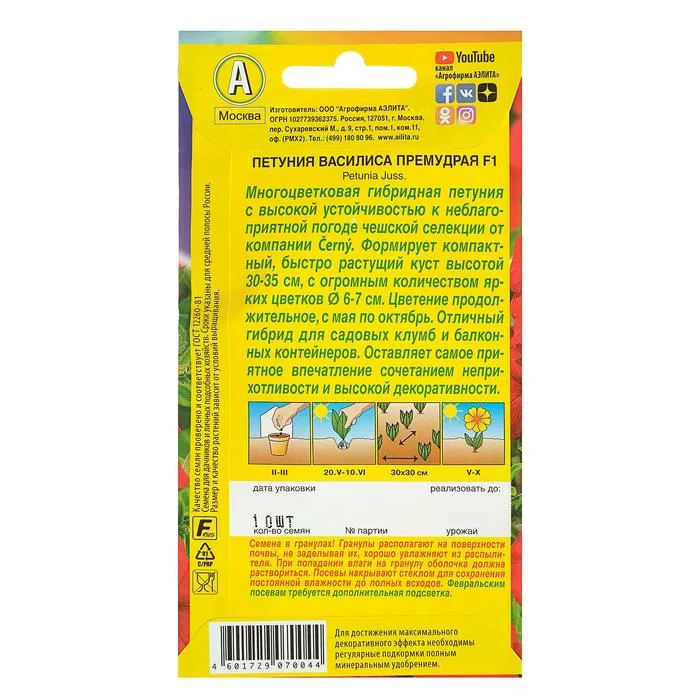 Посев семян на рассаду. Семена в гранулах! Гранулы располагают на поверхности почвы, не заделывая их, хорошо увлажняют из распылителя. При попадании влаги на гранулу оболочка должна раствориться. Посевы накрывают стеклом для сохранения постоянной влажности до полных всходов. Февральским посевам требуется дополнительная подсветка. Сеянцы пикируют в фазе одного-двух настоящих листьев. В фазе пяти-шести листьев проводят формирующую прищипку. Рассаду высаживают в открытый грунт, когда минует угроза заморозков.
