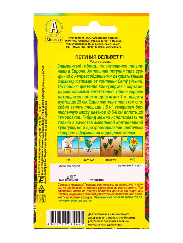 Семена цветов Петуния Вельвет F1 ампельная (драже в пробирке) С. Cerny, Ц/П,4 шт. — Характеристики