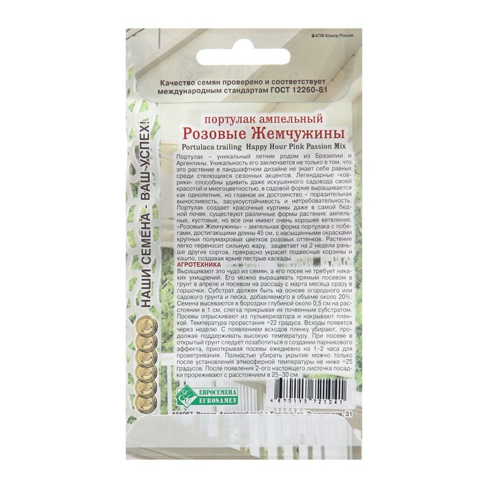 Семена цветов портулак ампельный «Розовые Жемчужины» 5 шт. — Характеристики