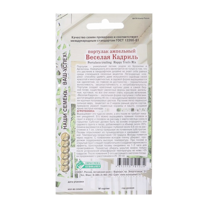 Семена цветов портулак ампельный «Веселая Кадриль» 5 шт. — Характеристики
