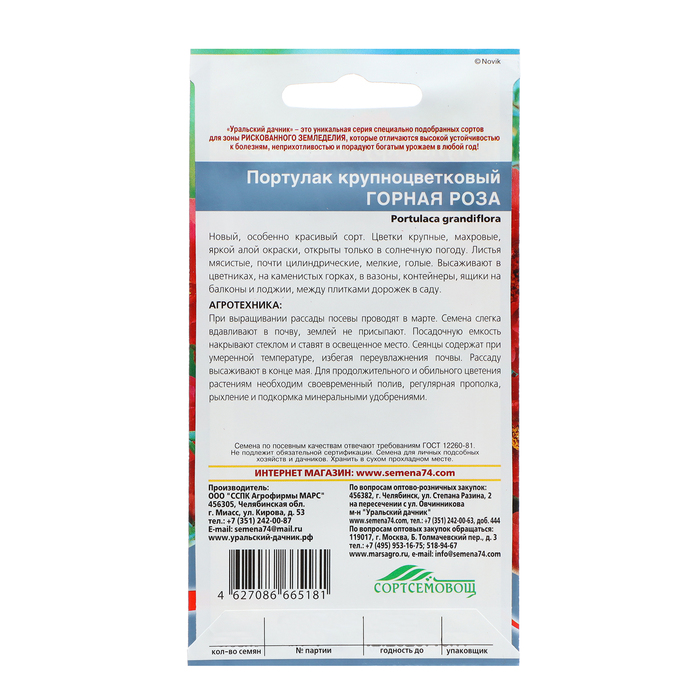 Семена Цветов Портулак "Горная роза" крупноцветковый ,0 ,05 г — Характеристики