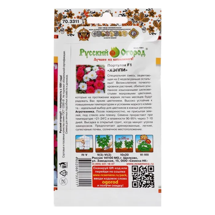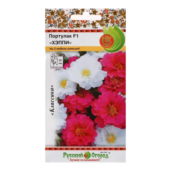 Портулак махровый Хэппи порадует неподражаемой россыпью розовых и белых махровых соцветий, которые образуются на побегах с июня по конец августа. Данная смесь уникальна тем, что зацветает на целых 2 недели раньше остальных сортов растения! Прекрасный вариант, если хотите как можно быстрее начать любоваться цветущими клумбочками или контейнерными посадками.