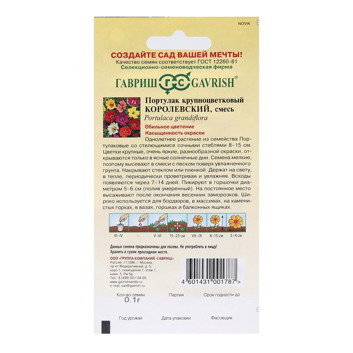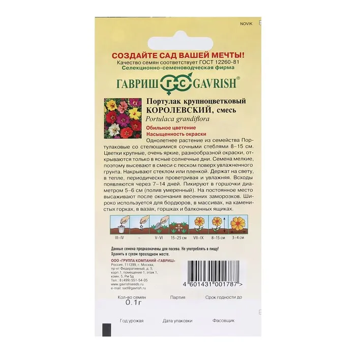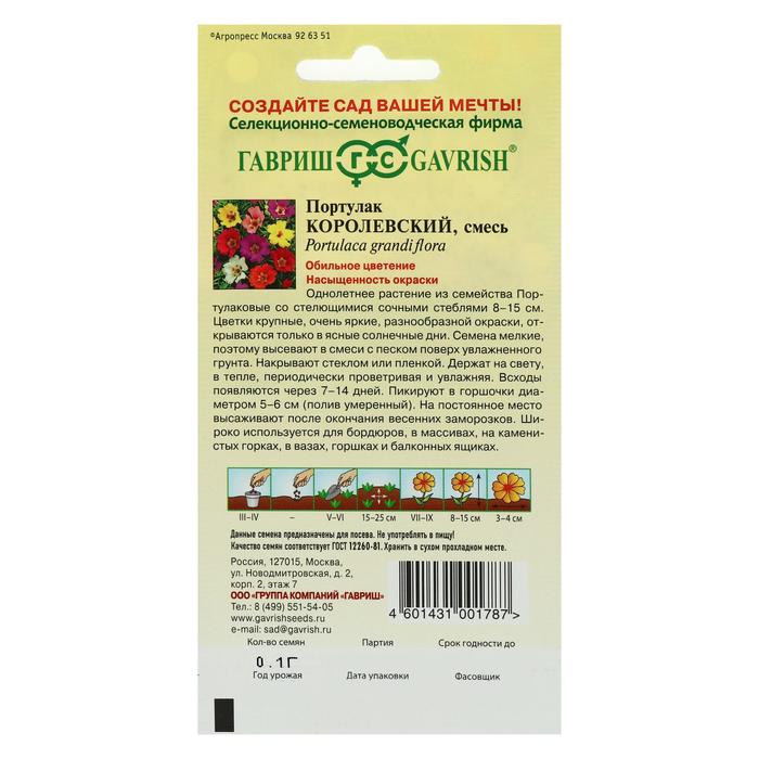 Однолетнее растение семейства Портулаковые со стелющимися сочными стеблями. Высота растения 8-15 см. Цветки крупные, очень яркие, разнообразной окраски, широко открытые, диаметром 3-4 см, простые. Цветки открываются только в ясные, солнечные дни. Цветет с июля до заморозков. Высевают в марте-начале апреля. На постоянное место высаживают после окончания весенних заморозков, выдерживая расстояние между растениями 15-25 см. Широко используется для бордюров, в массивах, на каменистых горках, в вазах, горшках и балконных ящиках.