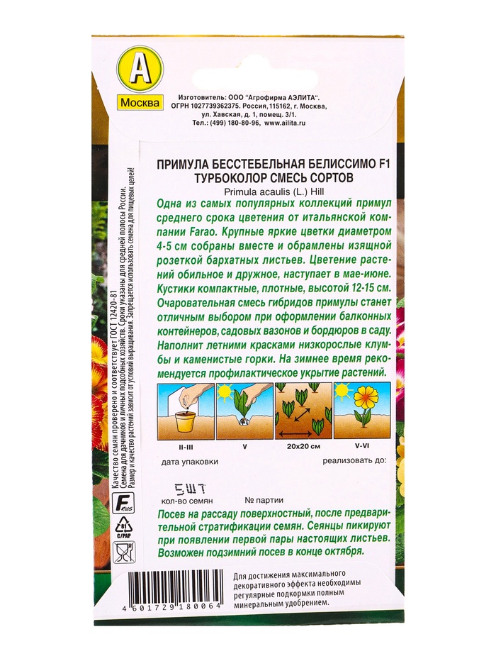 Семена цветов Примула Белиссимо F1 турбоколор, смесь сортов Мн Золотая серия, Ц/П,5 шт. — Характеристики
