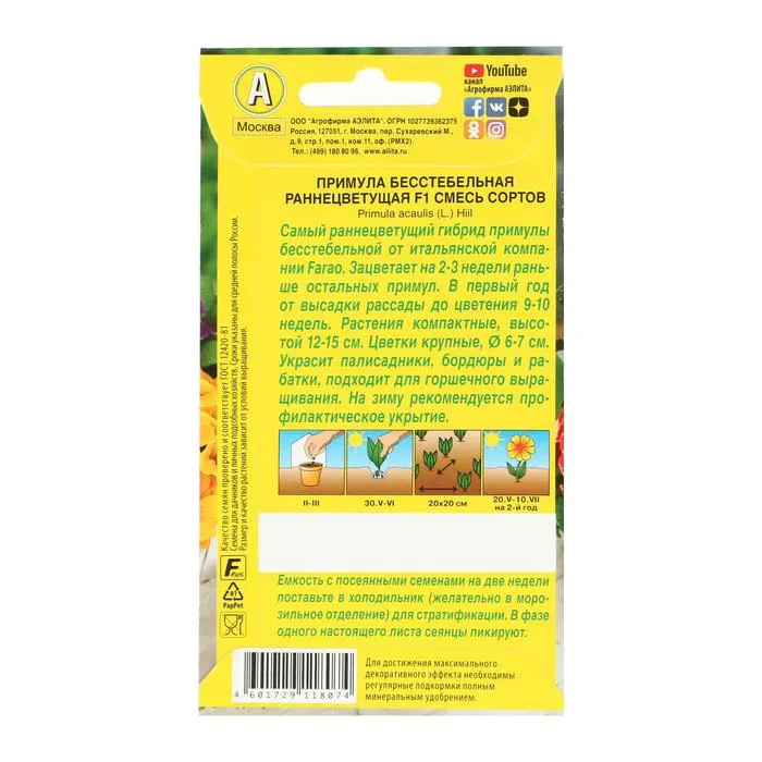 Самый раннецветущий гибрид примулы бесстебельной. Зацветает на 2-3 недели раньше остальных примул. В первый год от высадки рассады до цветения 9-10 недель. Растения компактные, высотой 12-15 см. Цветки крупные, Ø 6-7 см. Украсит палисадники, бордюры и рабатки, подходит для горшечного выращивания. На зиму рекомендуется профилактическое укрытие.