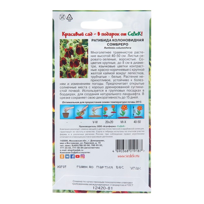 Семена цветов ратибида «Сомбреро», 0.1 г — Характеристики