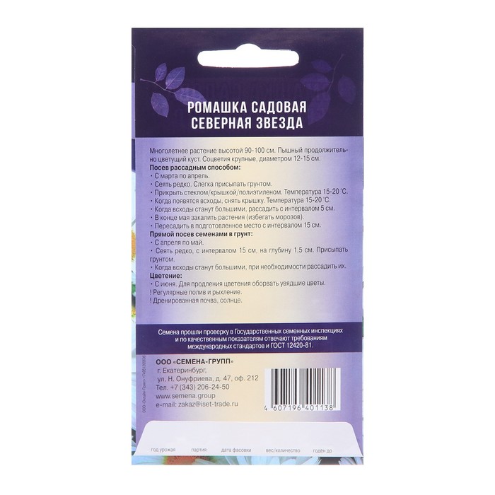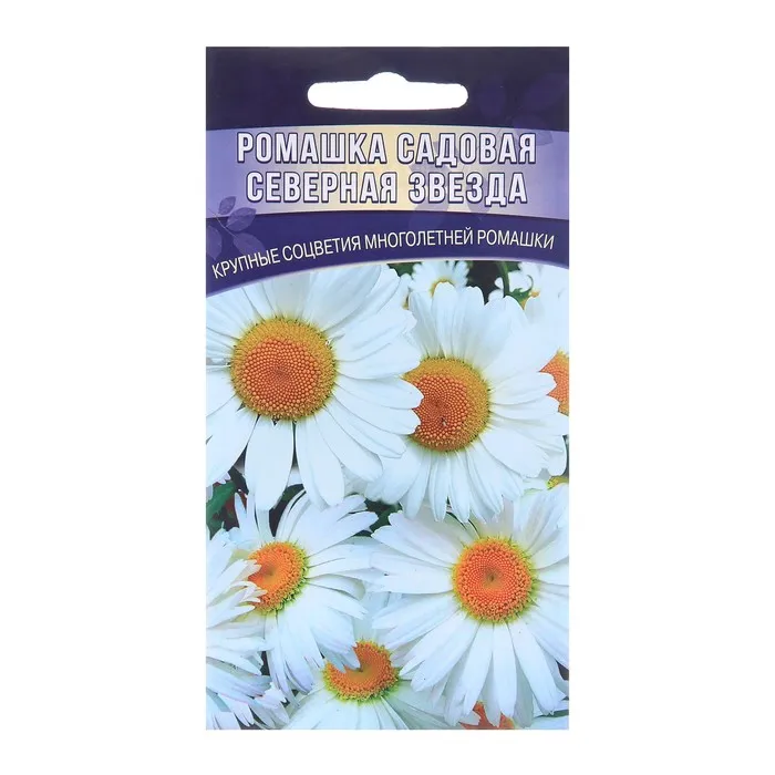 Семена Ромашка садовая Северная звезда - 2 упаковки по 0,3 г. Популярный многолетник с крупными соцветиями-корзинками. Высокие ветвистые растения обильно цветут все лето. Подходит для посадки в сборных цветниках, рабатках, миксбордерах. Великолепно смотрится в срезке и группами на газоне. Условия выращивания.