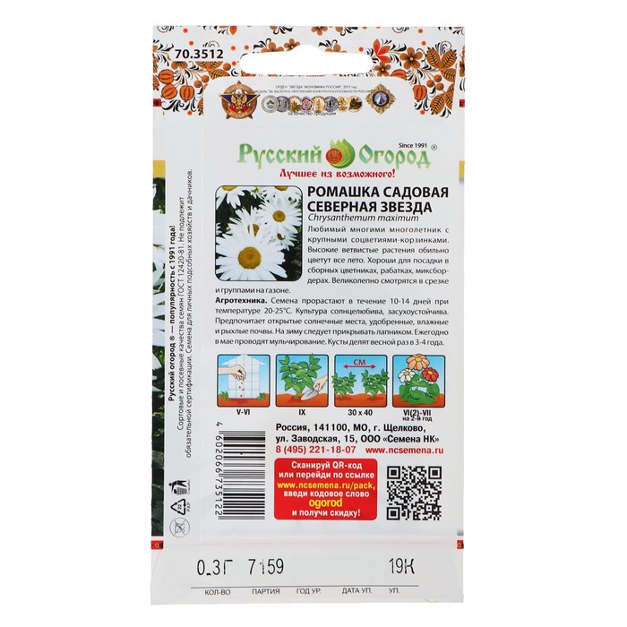 Семена цветов Ромашка "Северная звезда", 0,3 г — Характеристики