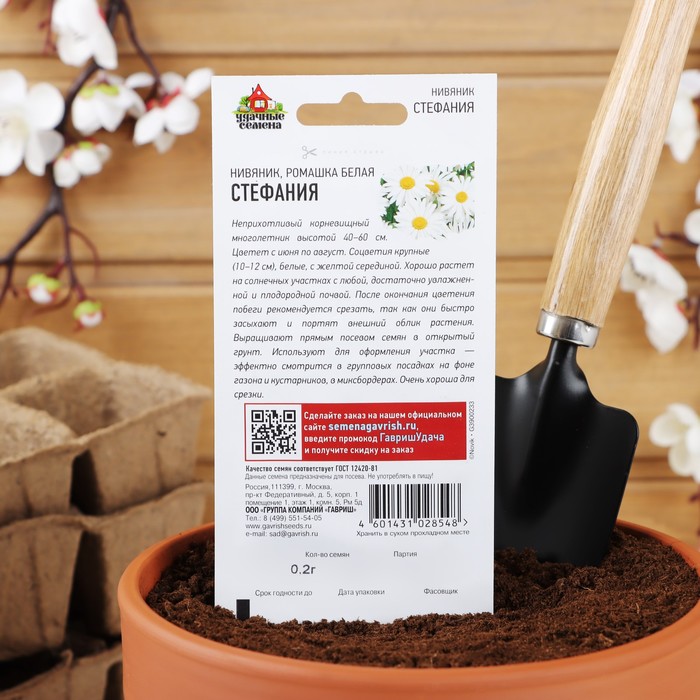 Семена Ромашка (Нивяник) Стефания. Неприхотливый корневищный многолетник высотой 40-60 см. Цветет с июня по август. Соцветия крупные (10-12 см), белые с желтой серединой. Хорошо растет на солнечных участках с любой достаточно увлажненной и плодородной почвой.