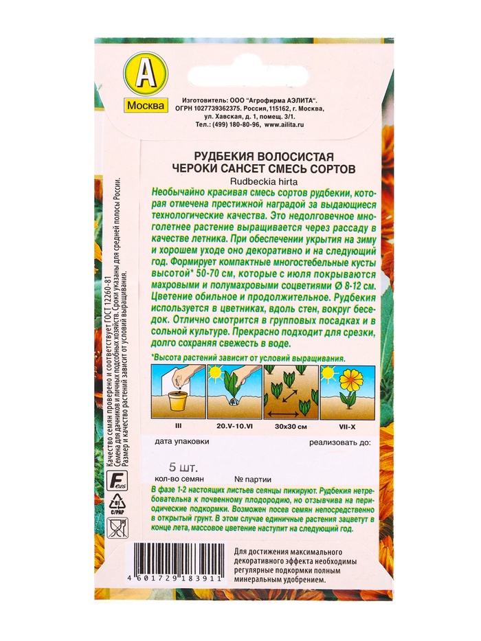 Семена цветов Рудбекия Чероки сансет, смесь сортов Победитель.Выбор экспертов, Ц/П,5 шт. — Характеристики