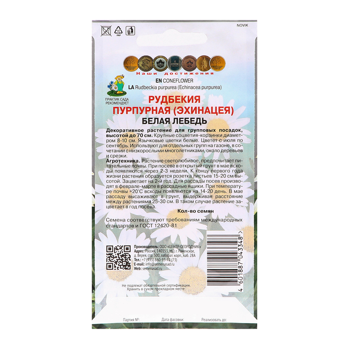 Семена цветов Рудбекия пурпурная "Лебедь", Белая, 0,1гр. — Характеристики