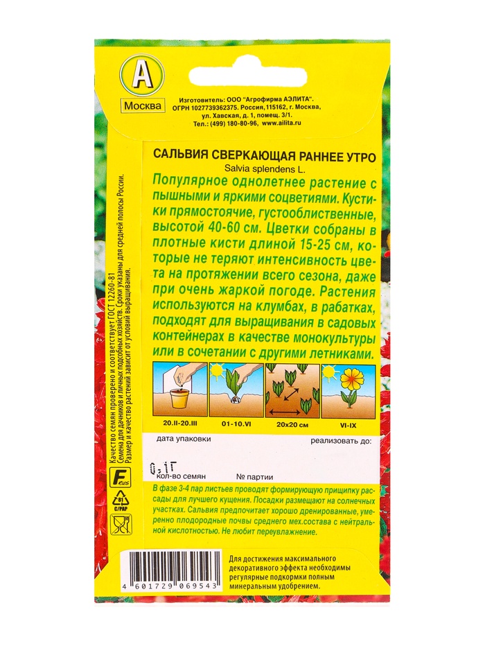 Семена цветов Сальвия Раннее утро , Ц/П,0,1 г — Характеристики