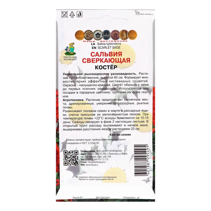 Семена цветов Сальвия сверкающая "Костер", 0,1гр. — Характеристики