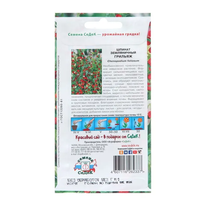 Семена цветов Шпинат" Грильяж", 0,1 г — Характеристики