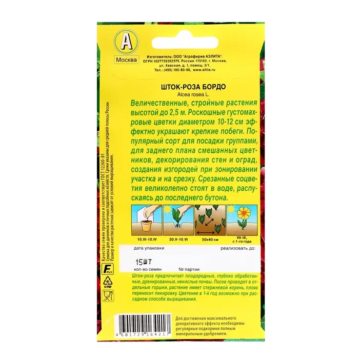 Семена цветов Шток-роза "Бордо", ц/п, 15 шт — Характеристики