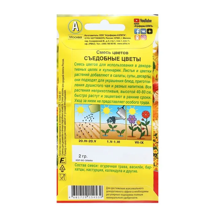 Семена Цветов Смесь "Съедобные цветы", 2 г — Характеристики