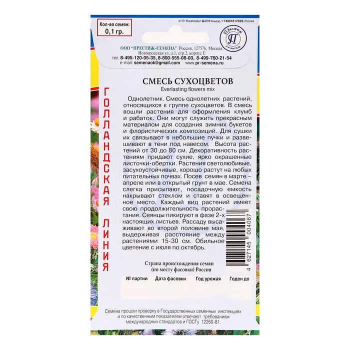 Семена цветов Смесь сухоцветов, 0,1 гр — Характеристики
