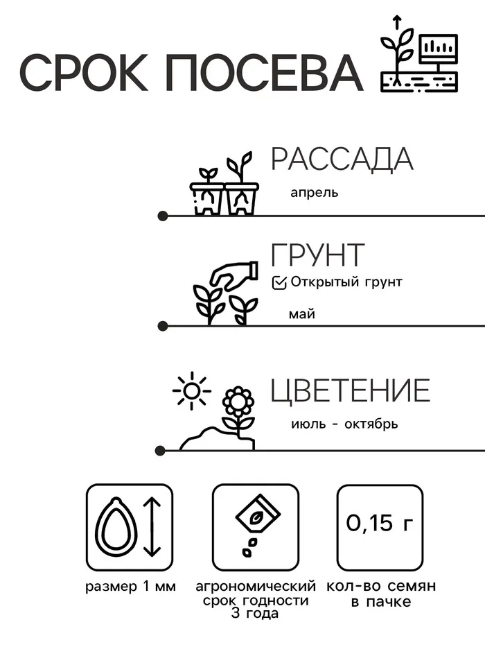 Однолетник советуют культивировать по рассадной технологии. Для этого потребуется высевать семенной материал в индивидуальные емкости, поскольку культура имеет разветвленную корневую систему и не слишком хорошо переносит процесс пересадки. В открытый грунт сеянцы рекомендуется переносить в середине мая.