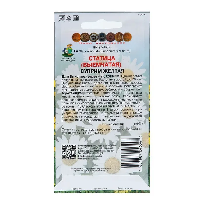 Очень популярное однолетнее растение. Сорт выступает востребованным сухоцветом. Стебли жесткие и прочные. Обычно их высота составляет 75 см. Но иногда растение достигает 90 см. Цветки имеют насыщенную желтую окраску. Между собой они собраны в соцветия щитковидного типа. Диаметр образований не превышает 10 см.