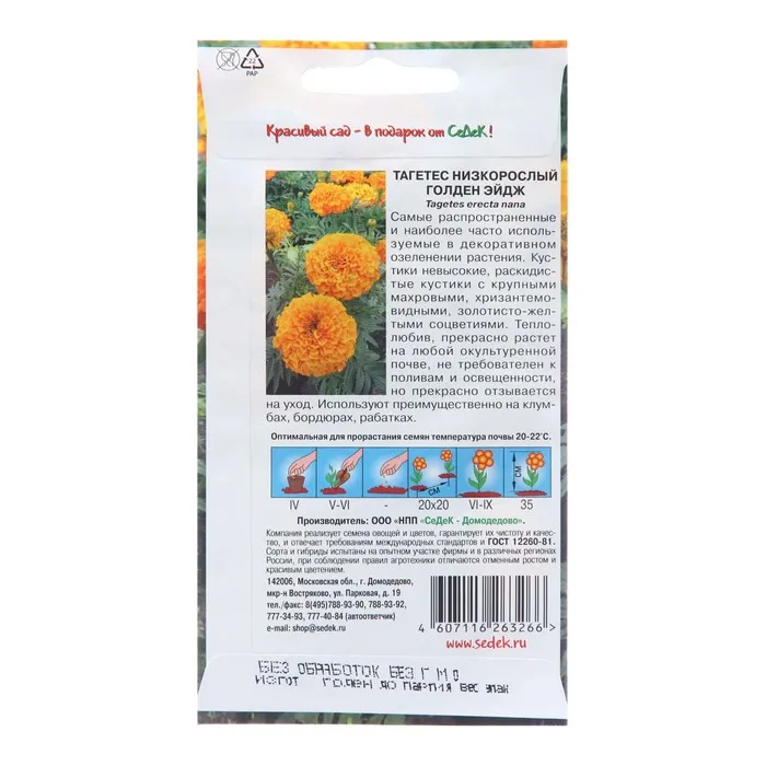 Семена цветов Тагетес "Голден Эйдж", Евро, 0,2 г — Характеристики