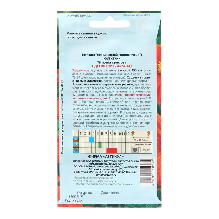 Семена Цветов Титония "Электра", 5 шт — Характеристики