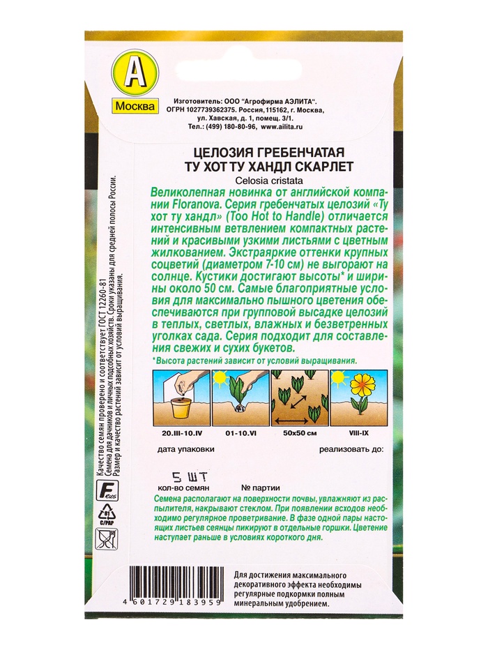 Семена цветов Целозия гребенчатая Ту хот ту хандл скарлет С. Floranova , Ц/П,5 шт. — Характеристики