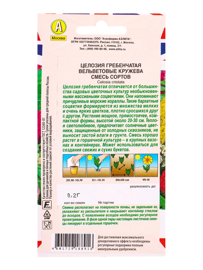 Семена цветов Целозия гребенчатая Вельветовые кружева, Британская коллекция цветов, Ц/П,0,2 г 109459 — Характеристики