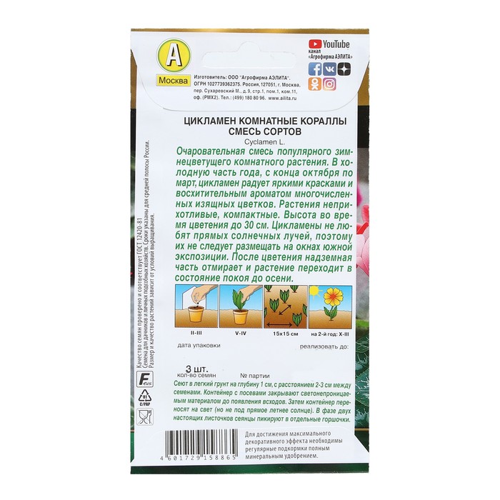 Семена Цветов Цикламен "Комнатные кораллы", смесь сортов, 3 шт — Характеристики