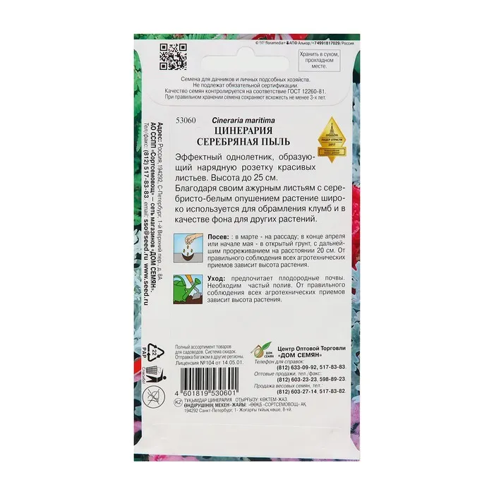 Цинерария серебряная пыль - однолетнее низкое компактное растение высотой 15 — 25 см украшено кружевом резных серебристых листьев с лёгким опушением. Весьма холодостойкая культура спокойно выдерживает осенние заморозки. Посев семенами с конца января по вторую декаду марта. Более ранние сроки позволяют получить рассаду для украшения веранд, застеклённых лоджий и балконов. Февральские посевы подходят для выращивания рассады для цветников и уличных вазонов, различных вертикальных конструкций и живых фигур. Мелкие семена по поверхности. Их нужно слегка вдавить в увлажнённую почвосмесь, а затем прикрыть емкость стеклом, прозрачной крышкой или поместить её в полиэтиленовый пакет. При температуре около 22 — 24°С всходы появляются через 7 – 10 дней, в более прохладном помещении — на несколько дней позже. Первое время сеянцы развиваются медленно. С середины мая до начала июня рассаду высаживают в цветник. Расстояние между кустиками низкорослых сортов должно быть не менее 20 см, более высоких — около 25 см. Во время весенних ночных заморозков высаженную рассаду для подстраховки прикрывают лутрасилом или иным нетканым материалом.