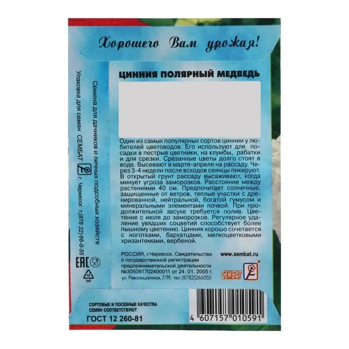 Однолетнее, мощное, ветвистое от основания растение высотой 60-90 см. Соцветия — корзинки плотные, плоские, хризантемовидные, 10-14 см в диаметре, белого цвета. Отличается прихотливо скрученными и изогнутыми лепестками. Ценится за обильное и продолжительное цветение. Прекрасно подойдут для посадки группами в сочетании с многолетниками и однолетниками при оформлении клумб, рабаток и больших массивов. Отличаются великолепными срезочными свойствами, долго стоят в воде, сохраняя декоративность.