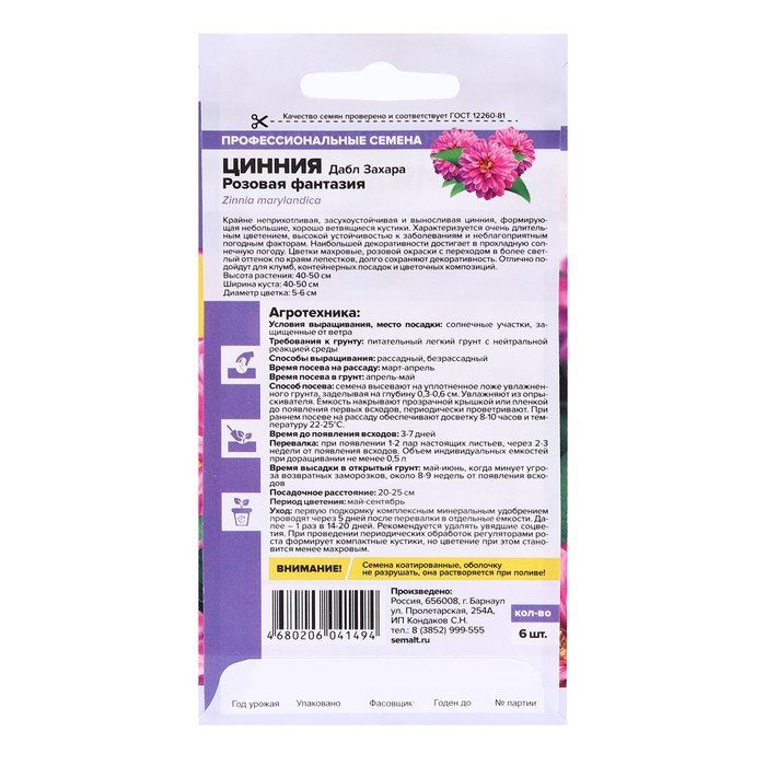 Супервыносливая, не требующая специального ухода сортосерия! Шикарная цинния с мощными побегами и множеством махровых соцветий. Кустики компактные, высотой 40-50 см, хорошо ветвятся. Цветки яркие, диаметром 5-6 см, с необычной окраской лепестков: насыщенно-розовой в центре, с переходом к более светлым краям. Отличительными признаками сортосерии являются: насыщенные и уникальные окраски цветков, длительный период цветения, повышенная толерантность к грибковым заболеваниям. Широко используется для оформления цветников, посадок в контейнеры и балконные ящики, для выращивания в вазонах и открытом грунте. Светолюбивое растение, отличается хорошей засухоустойчивостью. Предпочитает солнечные участки на рыхлых плодородных, хорошо дренированных почвах. Посевы на рассаду проводят в марте-апреле. Всходы появляются через 6-10 дней при температуре +21-23°С. Растения нормально развиваются при температуре +16-18°С. Высадка рассады в грунт в конце мая-июне, когда минует угроза заморозков. Посадочное расстояние – 25-30 см.