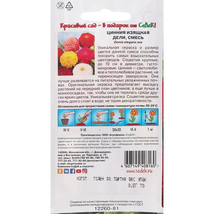 Семена цветов Цинния "Дели "0.5 г — Характеристики