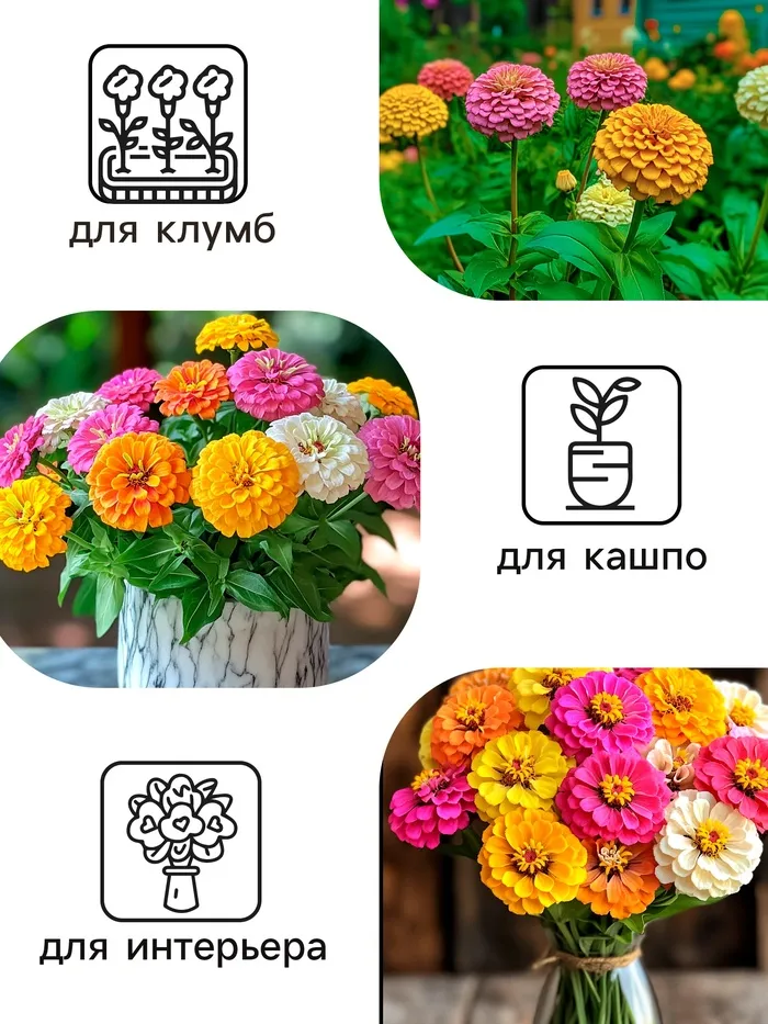 Семена цветов Цинния "Калифорнийские гиганты" смесь, 0,3 г — Характеристики