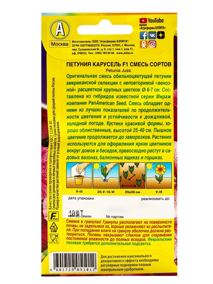 Посев семян на рассаду. Семена в гранулах! Гранулы располагают на поверхности почвы, не заделывая их, хорошо увлажняют из распылителя. При попадании влаги на гранулу оболочка должна раствориться. Посевы накрывают стеклом для сохранения постоянной влажности до полных всходов. Февральским посевам требуется дополнительная подсветка. Сеянцы пикируют в фазе одного-двух настоящих листьев. В фазе пяти-шести листьев проводят формирующую прищипку. Рассаду высаживают в открытый грунт, когда минует угроза заморозков.