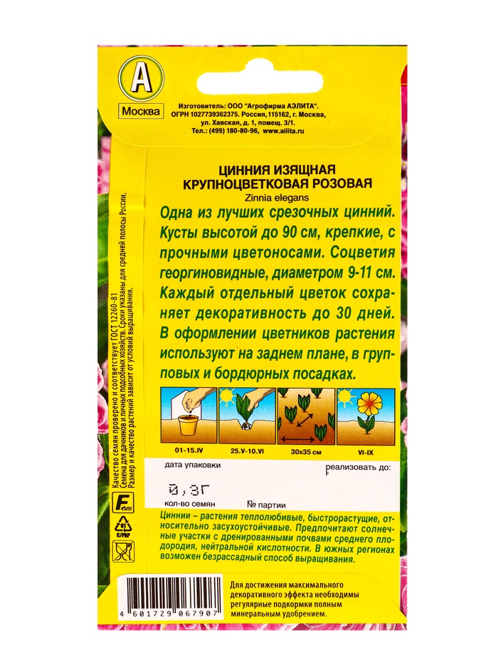 Семена цветов Цинния Крупноцветковая розовая , Ц/П,0,3 г — Характеристики