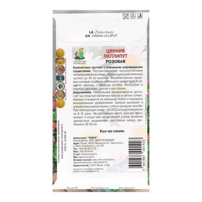 Семена цветов Цинния "Лиллипут", Розовая, 0,4гр. — Характеристики