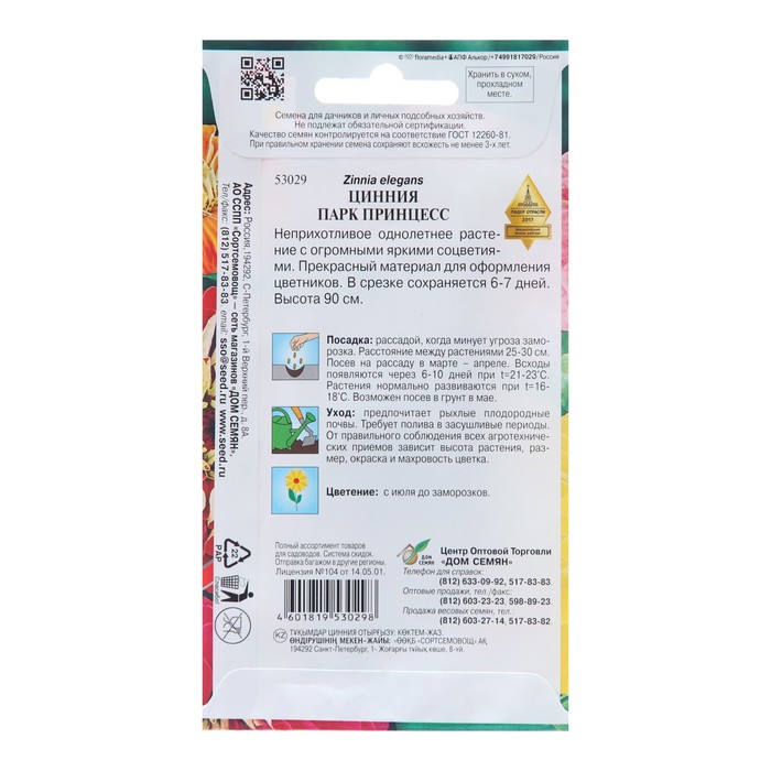 Семена цветов Цинния "Парк Принцесс", 23 шт — Характеристики