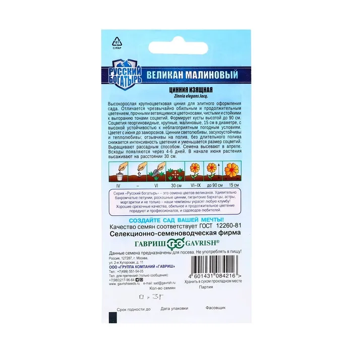 Серия высокорослых крупноцветковых цинний для элитного оформления сада. Отличается чрезвычайно обильным и продолжительным цветением, прочными ветвящимися цветоносами, чистыми и стойкими к выгоранию тонами соцветий. Формирует приподнятые, разветвленные кусты высотой до 90 см. Соцветия георгиновидные, крупные, малиновые, 15 см в диаметре, с высокой устойчивостью к неблагоприятным погодным условиям. Цветет с июня до заморозков. Циннии светолюбивы, засухоустойчивы и теплолюбивы; отзывчивы на полив, без длительного полива снижается интенсивность цветения и уменьшается размер соцветий. Выращивают рассадным способом. Семена высевают в апреле. Всходы появляются через 4-6 дней. В начале июня растения высаживают на расстоянии 20 см.