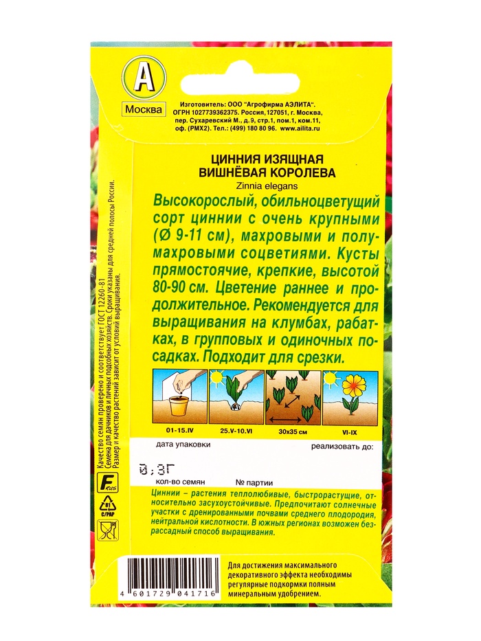 Семена цветов Цинния Вишневая королева , Ц/П,0,3 г — Характеристики