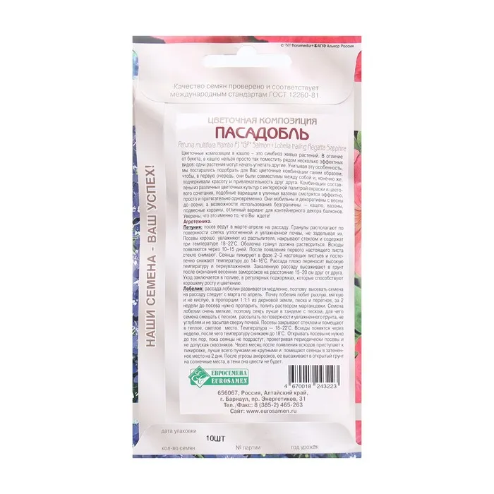 Семена Цветов Цветочная композиция Пасадобль, 10 драже — Характеристики