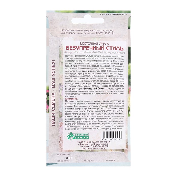 «Безупречный Стиль»- смесь, идеально подобранная в своем цветовом сочетании, позволит в вечерние часы насладиться замечательным запахом восхитительных и нежных цветков.