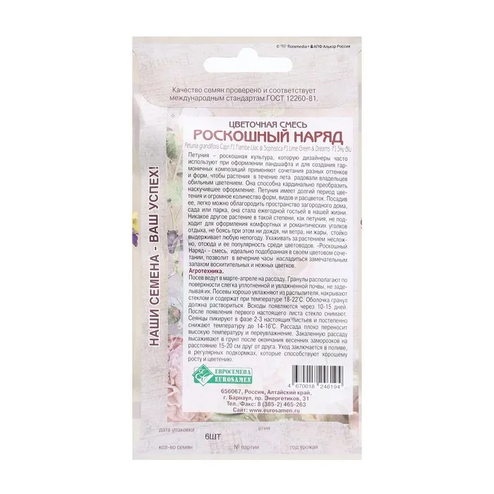 «Роскошный Наряд» - смесь, идеально подобранная в своем цветовом сочетании, позволит в вечерние часы насладиться замечательным запахом восхитительных и нежных цветков.