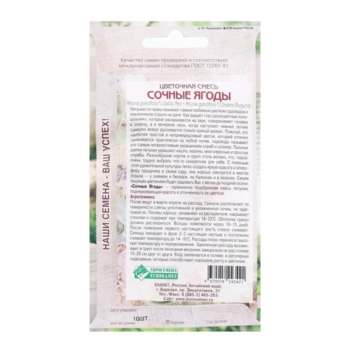 «Синие Озера» - смесь, идеально подобранная в своем цветовом сочетании, позволит в вечерние часы насладиться замечательным запахом восхитительных цветков.